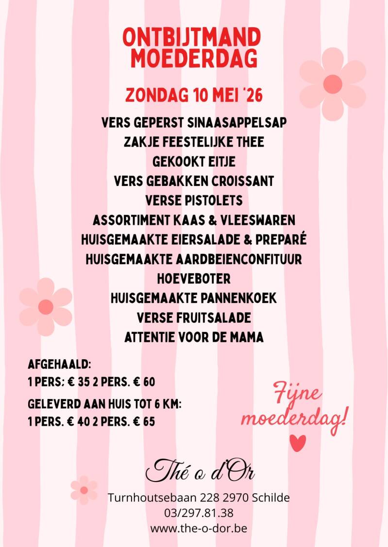 Vier Moederdag op zondag, 10 mei met een ontbijtmand van Thé o d'Or boordevol verse & huisbereide producten!