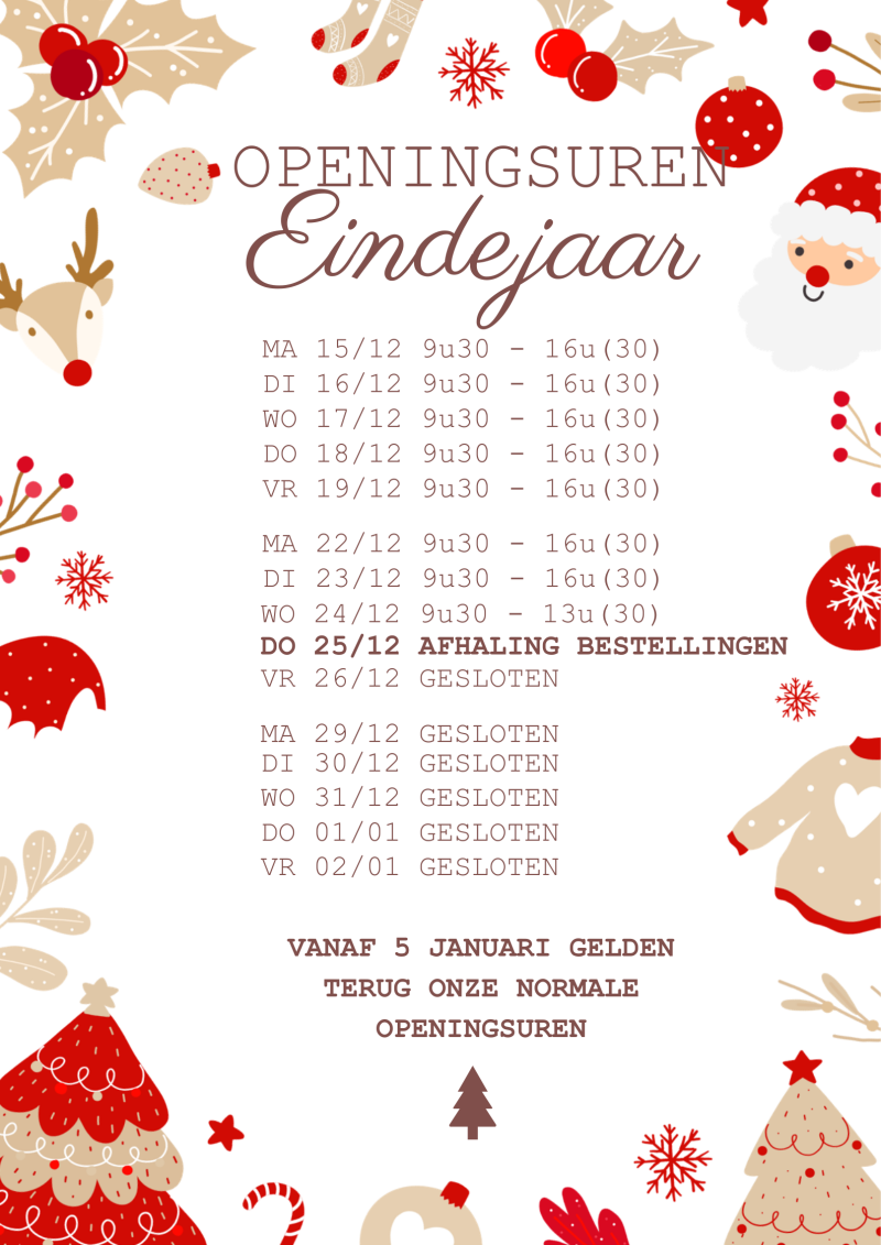 Zaterdag & Zondag gesloten (groepen vanaf 10 personen ontvangen we graag na reservatie tijdens het weekend)